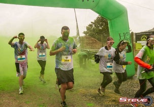 Couverture photographique des courses Mudrun avec boue et obstacles, mettant en valeur l'effort et la camaraderie des coureurs.